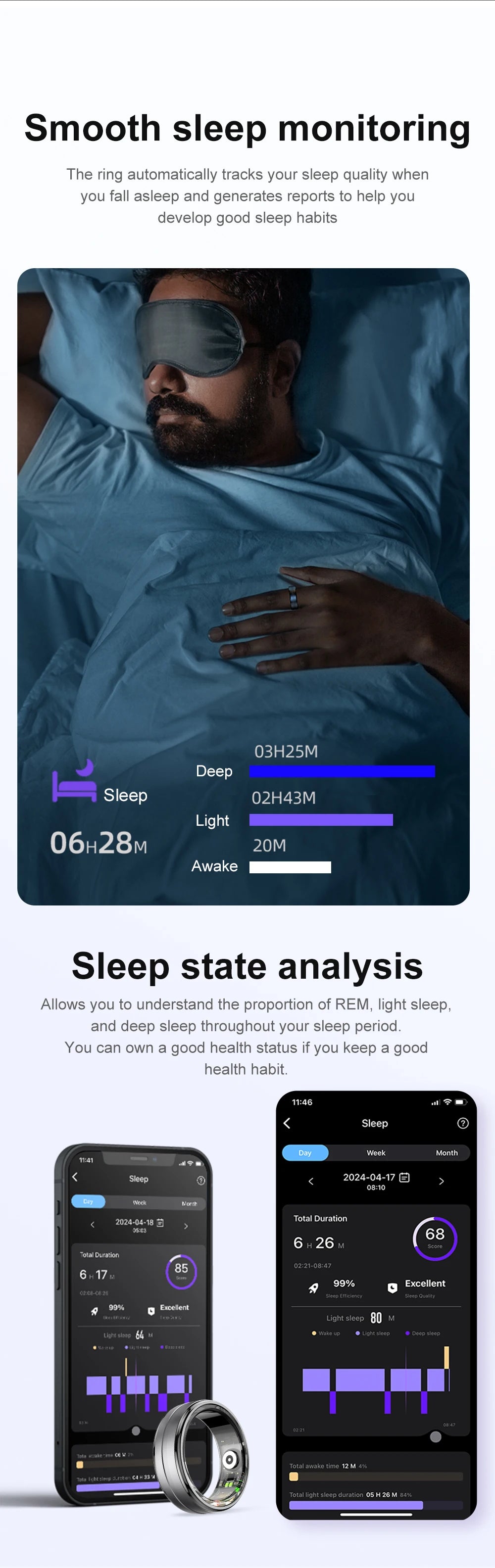 The COLMI Smart Health Ring is perfect for those who seek both sophistication and functionality. Built with military-grade titanium steel, it offers unmatched durability while maintaining a sleek and stylish look. With 24/7 health monitoring and sleep tracking, you can take charge of your well-being, ensuring you stay informed about your fitness and sleep quality. The IP68 waterproof rating adds an extra layer of reliability, allowing you to wear it in any environment without worry. Whether you’re focused on improving your fitness or want a fashionable accessory that enhances your lifestyle, this smart health ring is the ultimate blend of technology and design.